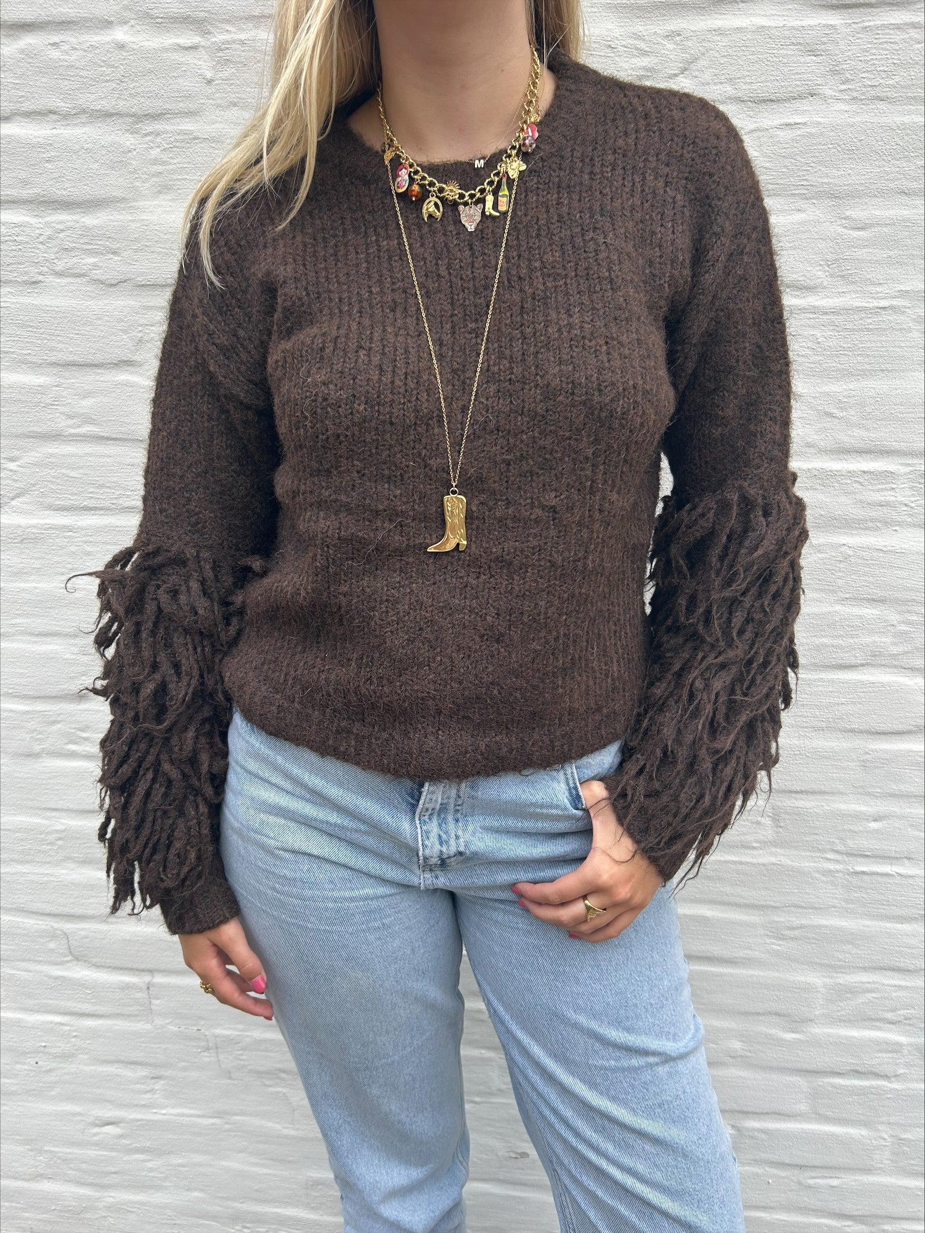 Trui met franje op de mouwen, leuk voor elke gelegenheid!