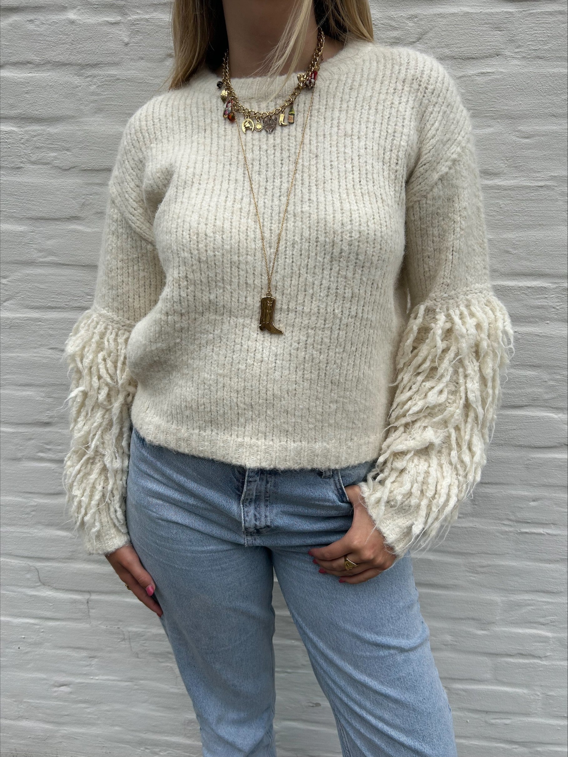 Trui met franje op de mouwen, leuk voor elke gelegenheid!